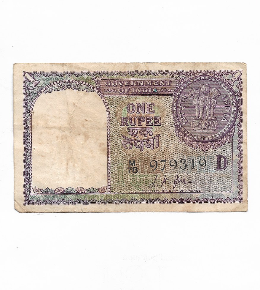 1 RUPEE ~ 1957 ~ L.K.JHA ~ “M” PRIFIX , “D” INSET ~ RARE NOTE ~ F-8/31
