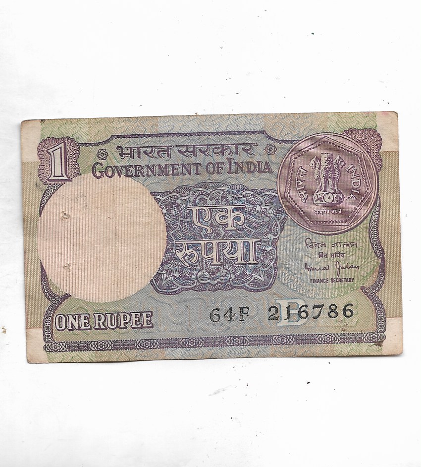 1 RUPEE ~ ENDING 786 SERIAL, BIMAL JALAN, 1990 ~ RARE NOTE ~ F-11