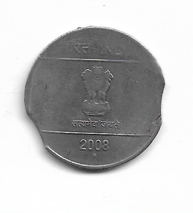 1 RUPEE ~ ERROR ~ ( CLIP & 2 DIE CUT ) 2008, BOMBAY MINT ~ RARE COIN ~ F-6