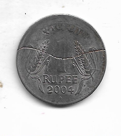 1 RUPEE ~ ERROR ( DIE CRACK ) 2004, BOMBAY MINT ~ RARE COIN ~ I-15