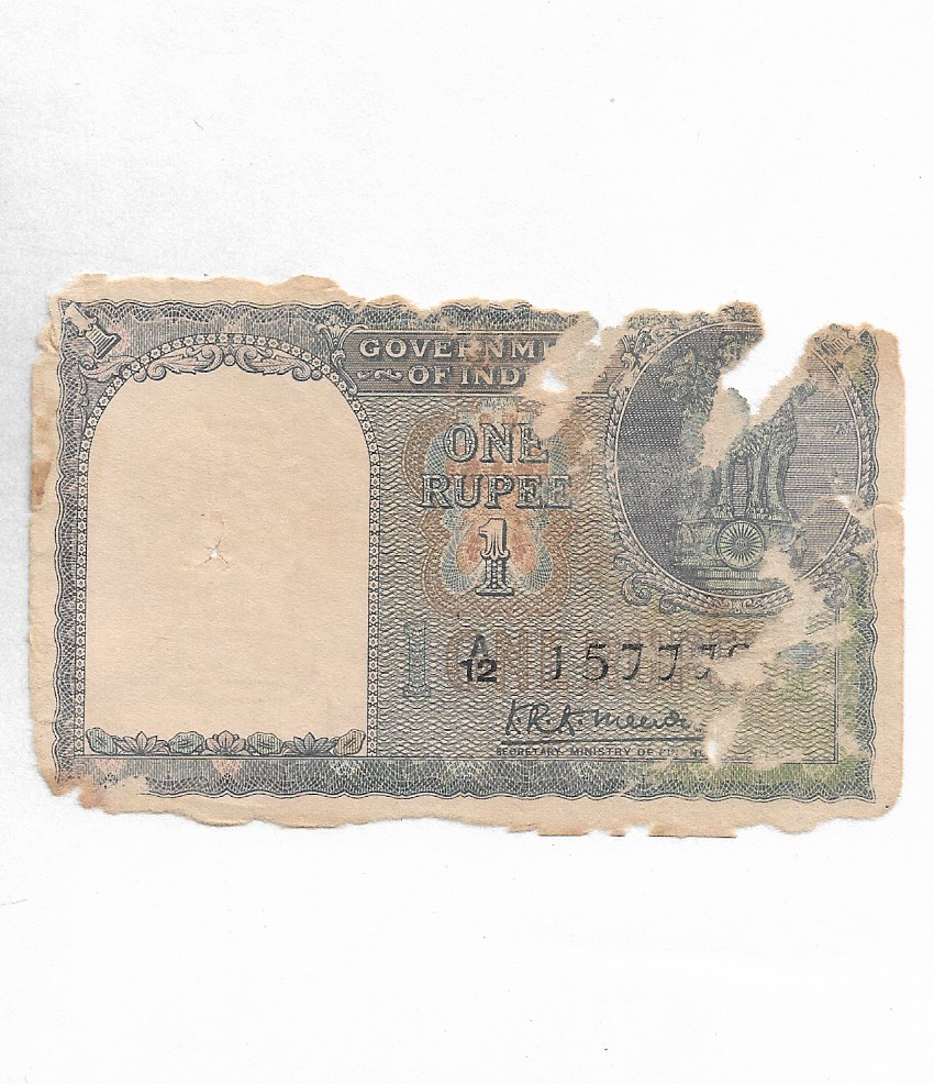 1 RUPEE ~ K.R.K.MANEN ~ A-1, First Issue, “A” PRIFIX ~ RARE NOTE ( ITEM AS PER SCAN ) ~ I-6