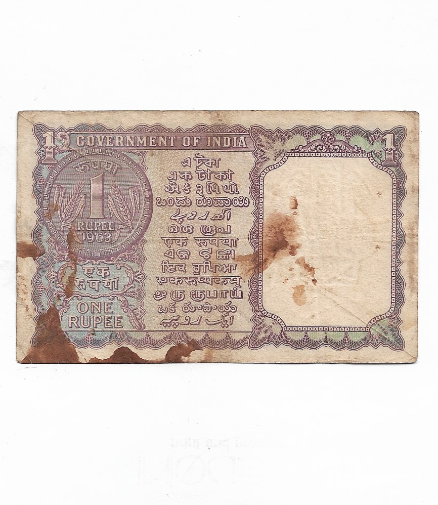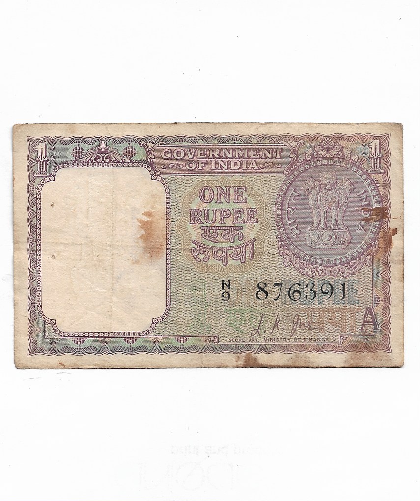 1 RUPEE ~ L.K.JHA ~ 1963 ~ “N” PRIFIX, “A” INSET ~ RARE NOTE ~ A-89