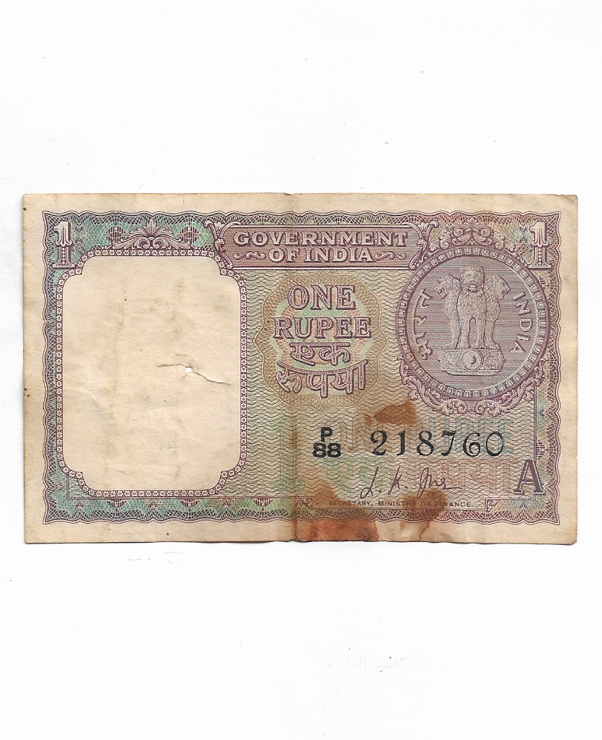 1 RUPEE ~ L.K.JHA ~ 1963 ~ “P” PRIFIX, “A” INSET ~ RARE NOTE ~ F-3/36
