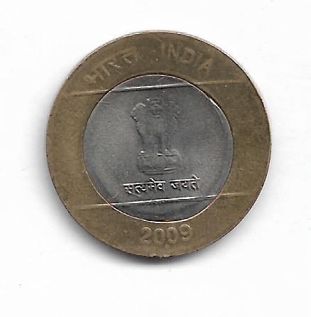 10 RUPEE ~ ERROR ( CENTER OUT ) ~ 2009, NOIDA MINT ~ RARE COIN ~ R-21