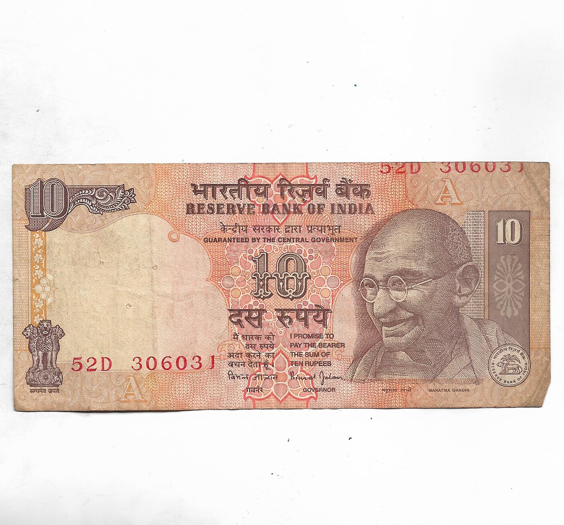 10 RUPEE ~ ERROR ~ SERIAL NO. SHIFTING ~ BIMAL JALAN ~ RARE NOTE ~ O-24