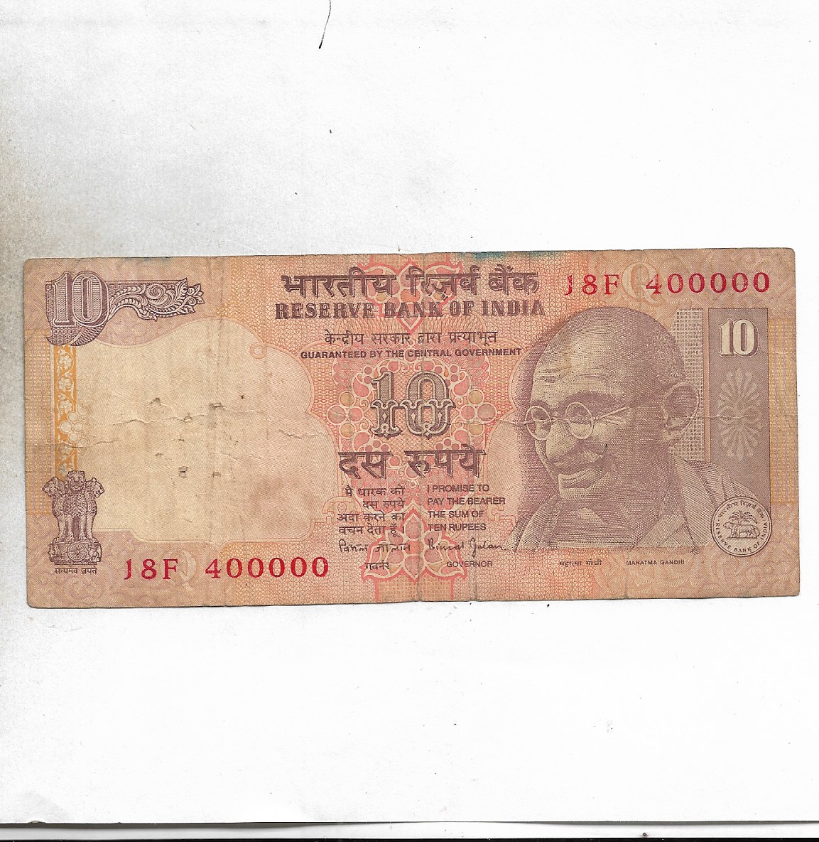 10 RUPEE ~ FANCY SERIAL ( 400000 ) BIMAL JALAN ~ RARE NOTE ~ F-7/2