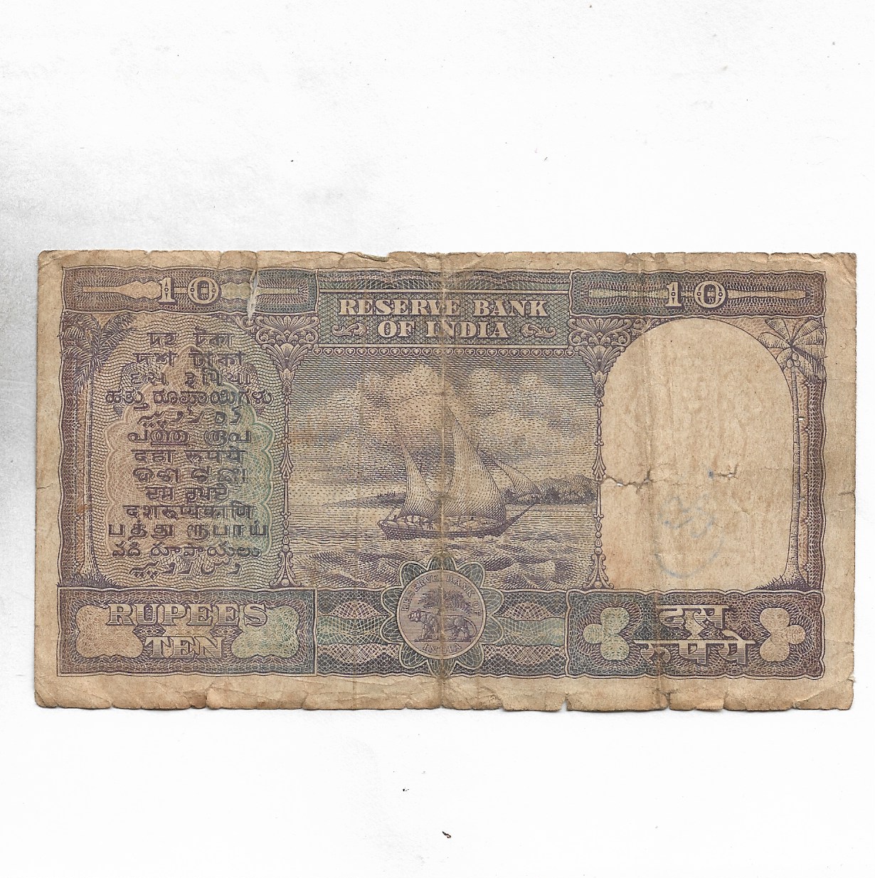 10 RUPEE ~ P.C.BATTACHARAYA ~ “T” PRIFIX, “B” INSET ~ SHIP ON BACK ( BIG NOTE ) ~ RARE NOTE ~ F-6/60