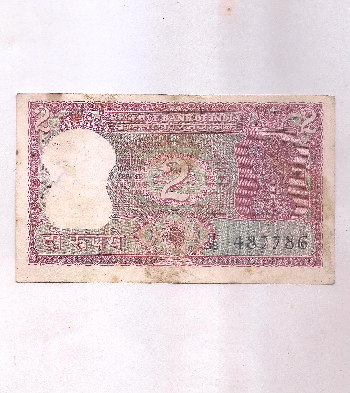 2 RUPEE ~ ENDING 786 SERIAL, I.G.PATEL ~ RARE NOTE ~ I-30