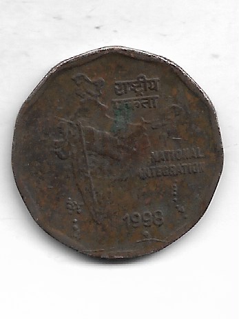2 RUPEE ~ ERROR ( BLACK BEAUTY ) ~ NATIONAL INTEGRATION, 1998, BOMBAY MINT ~ RARE COIN ~ N-24
