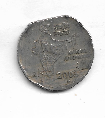 2 RUPEE ~ ERROR ( CLIP & DIE CUT ) 2003, HYDERABAD MINT ~ RARE COIN ~ S-15