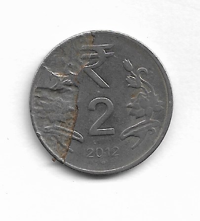 2 RUPEE ~ ERROR ( LAMINATION ) 2012, NOIDA MINT ~ RARE COIN ~ V-3
