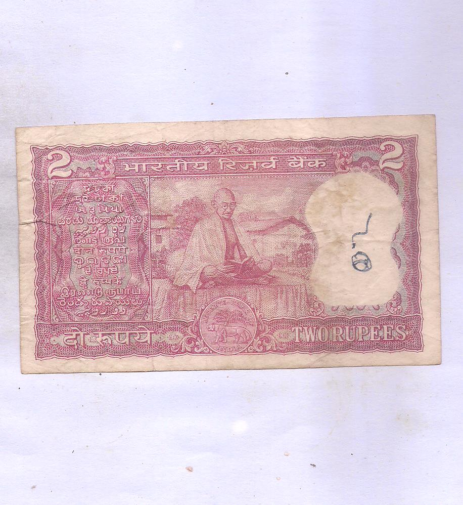 2 RUPEE ~ GANDHI ON BACK ~ L.K.JHA ~ “A” PRIFIX, RARE NOTE ~ F-6/8