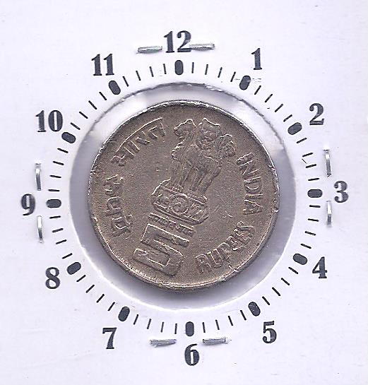 5 RUPEE ~ ERROR ~ ( 1oCLOCK ) LAL BAHADUR SHASTRI, 2004, KOLKATA MINT ~ RARE NOTE ~ E-10