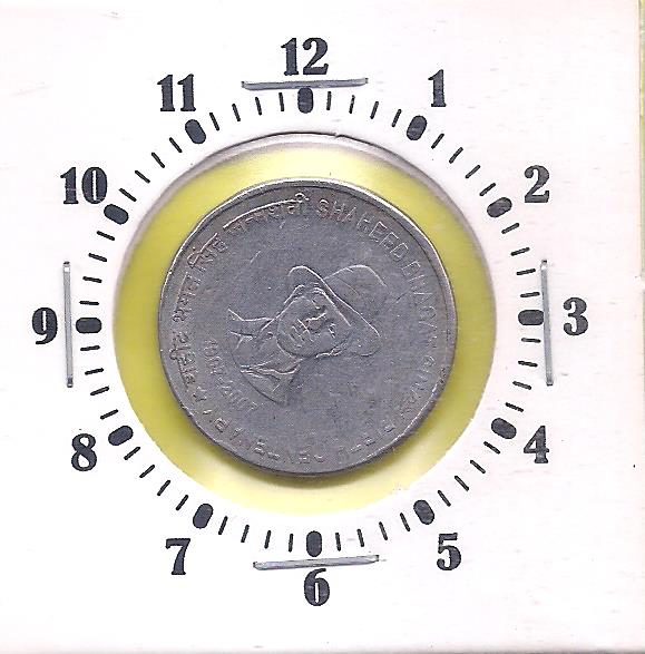 5 RUPEE ~ ERROR ( 2oCLOCK ) BHAGAT SINGH, 2007, HYDERABAD MINT ~ RARE COIN ~ I-12