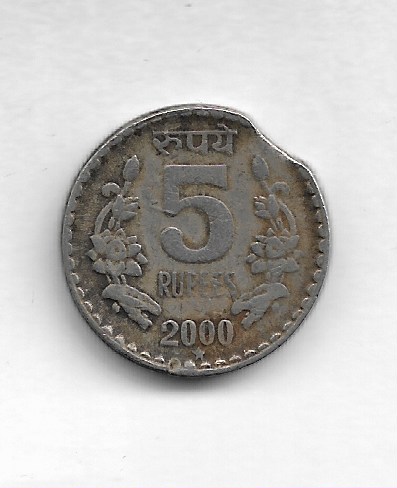 5 RUPEE ~ ERROR ( CLIP & DIE CUT ) 2000, HYDERABAD MINT ~ RARE COIN ~ V-18