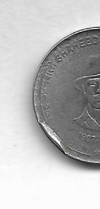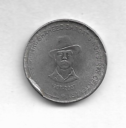 5 RUPEE ~ ERROR ( EXTRA METAL ) SAHEED BHAGAT SINGH, 2007, HYDERABAD MINT ~ RARE COIN ~ E-23
