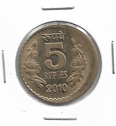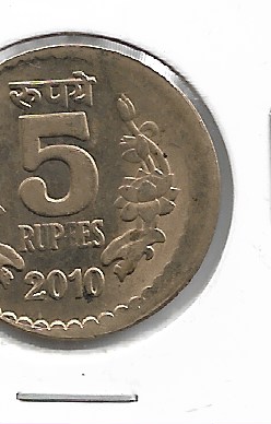 5 RUPEE ~ ERROR ( SHIFTING ) ~ 2010, KOLKATA MINT ~ RARE COIN ~ J-23
