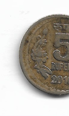 5 RUPEE ~ ERROR ~ ( SHIFTING ) 2010, KOLKATA MINT ~ RARE COIN ~ U-10