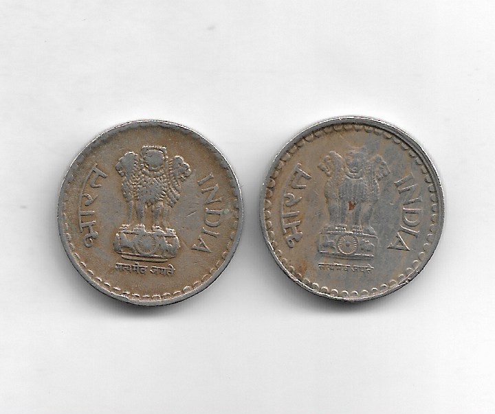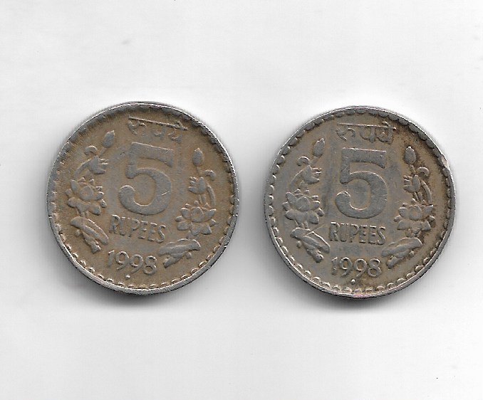 5 RUPEE ~ REGULAR ISSUE, 1998 ~ 2 Different LION Variety ( MULE / DIE VARIETY ) ~ BOMBAY MINT ~ R-9
