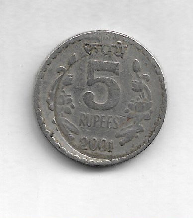 5 RUPEES ~ ERROR ( DIE ERROR ) ~ 2001 , KOLKATA MINT ~ RARE COIN ~ J-22
