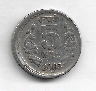 5 RUPEES ~ ERROR ( SHIFTING ) 2003, HYDERABAD MINT ~ RARE NOTE ~ N-24