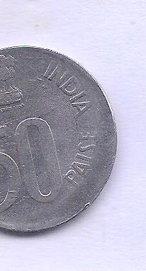 50 PAISE ~ ERROR ( EXTRA METAL ) 2002, HYDERABAD MINT ~ RARE NOTE ~ K-23