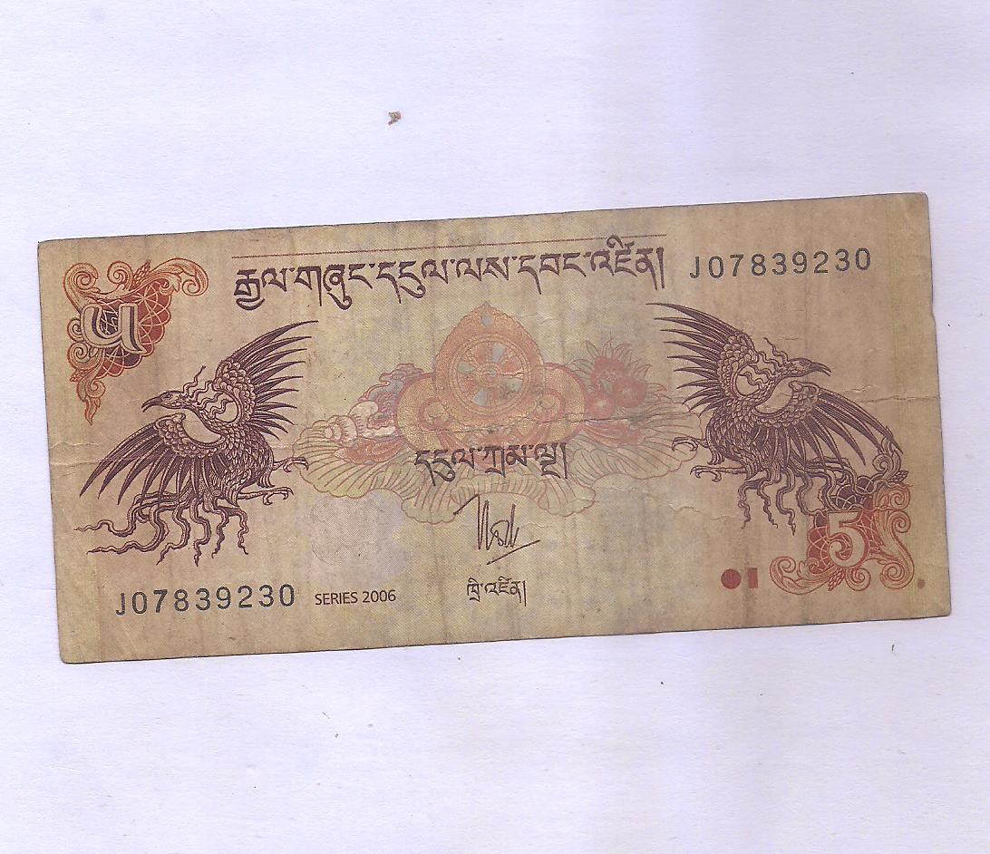 Bhutan ~ 5 Ngultrum ~ 2006~ RARE NOTE ~F-5/21