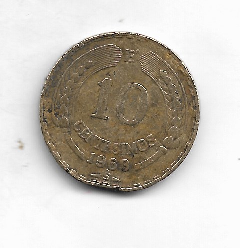CHILE ~ 10 Centésimos, 1963 ~ RARE BRASS COIN ~ G-17