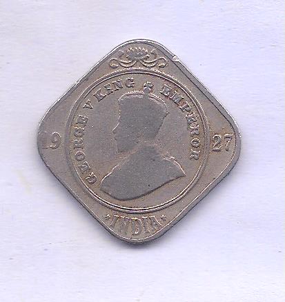 GEORGE V ~ 2 ANNA ~ 1927 ~ RARE CO-NICKEL COIN ~ A-5