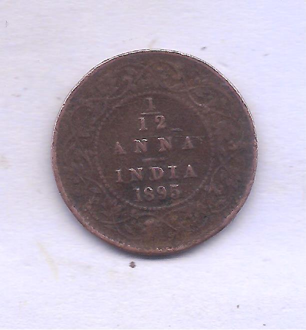 INDIA- BRITISH ~ 1/12 Anna – Victoria ~ 1895 ~ RARE COIN ~ B-12