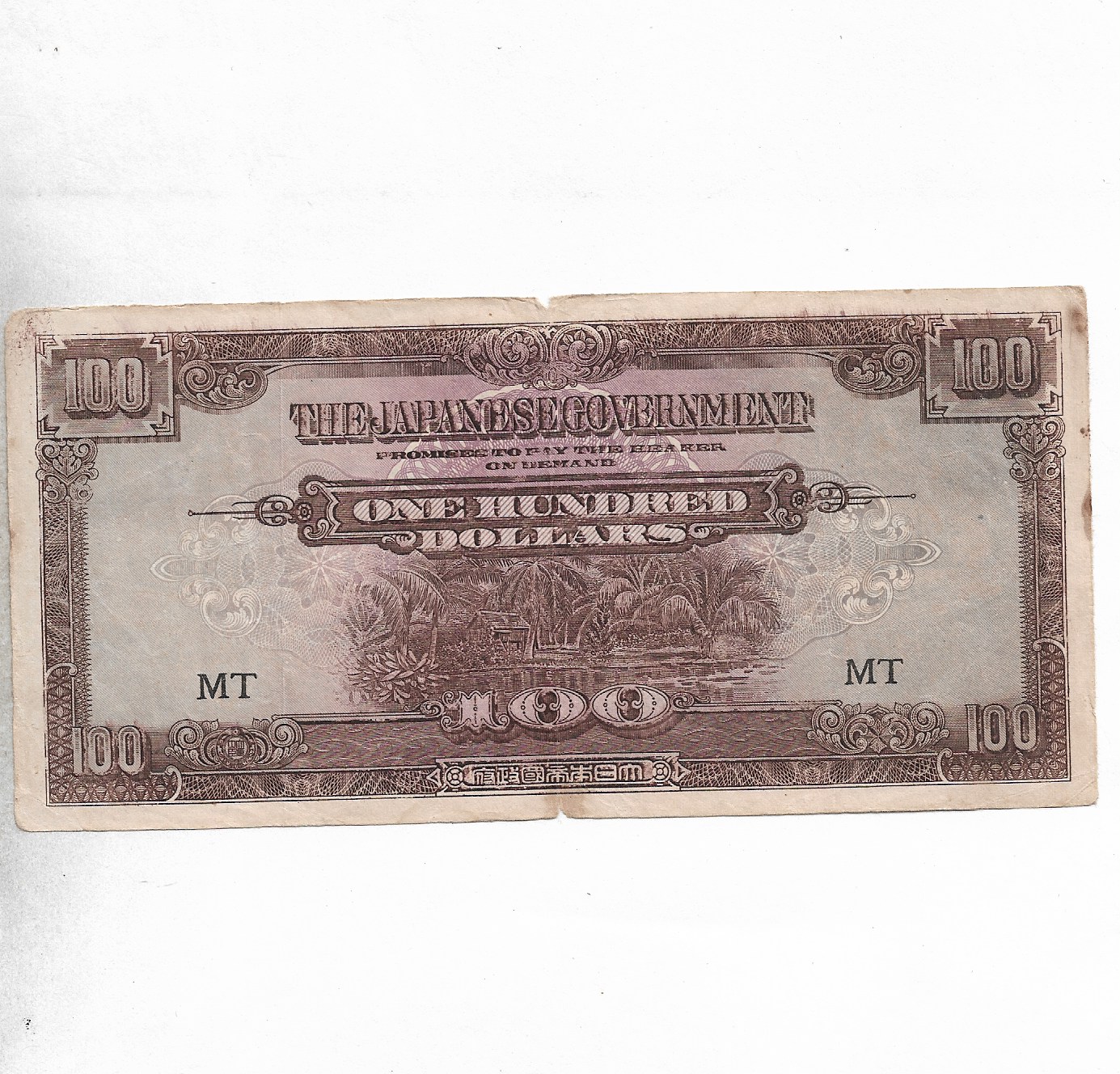 Malaya (Malaysia) ~ 100 Dollars “Banana Money” Japanese Government, 1944 ~ RARE NOTE ~ F-5/23