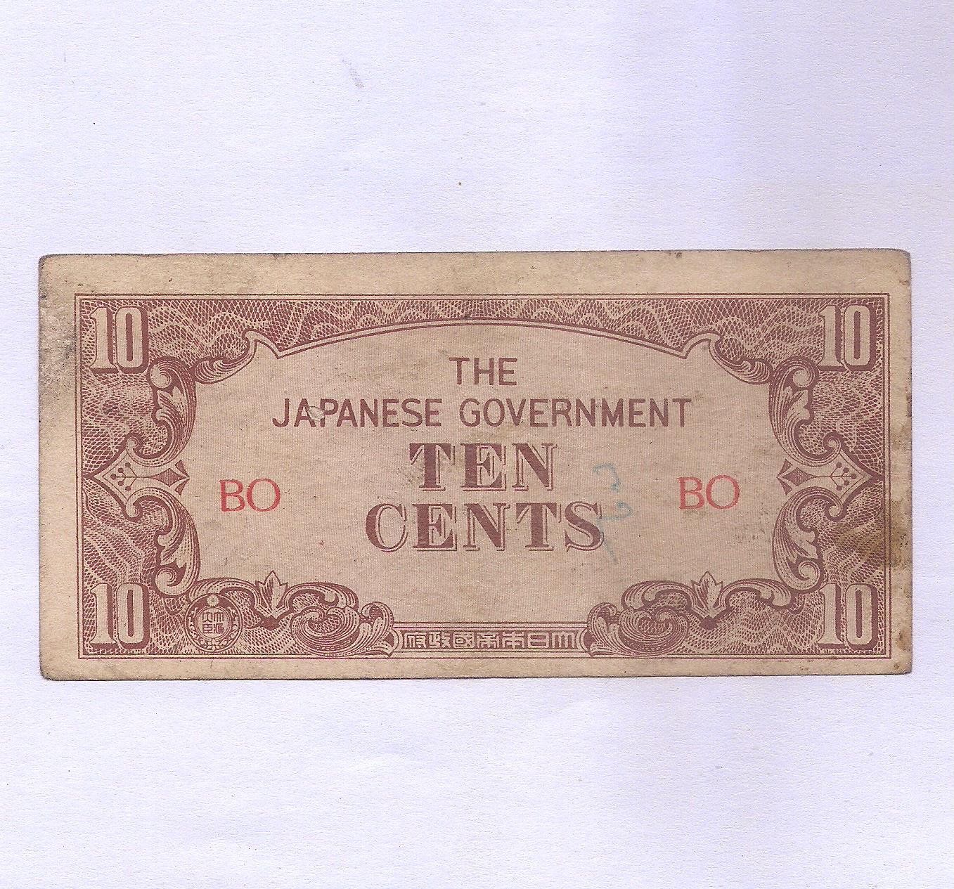 Myanmar ~ 10 Cents ~ 1942~ RARE NOTE ~ N-26