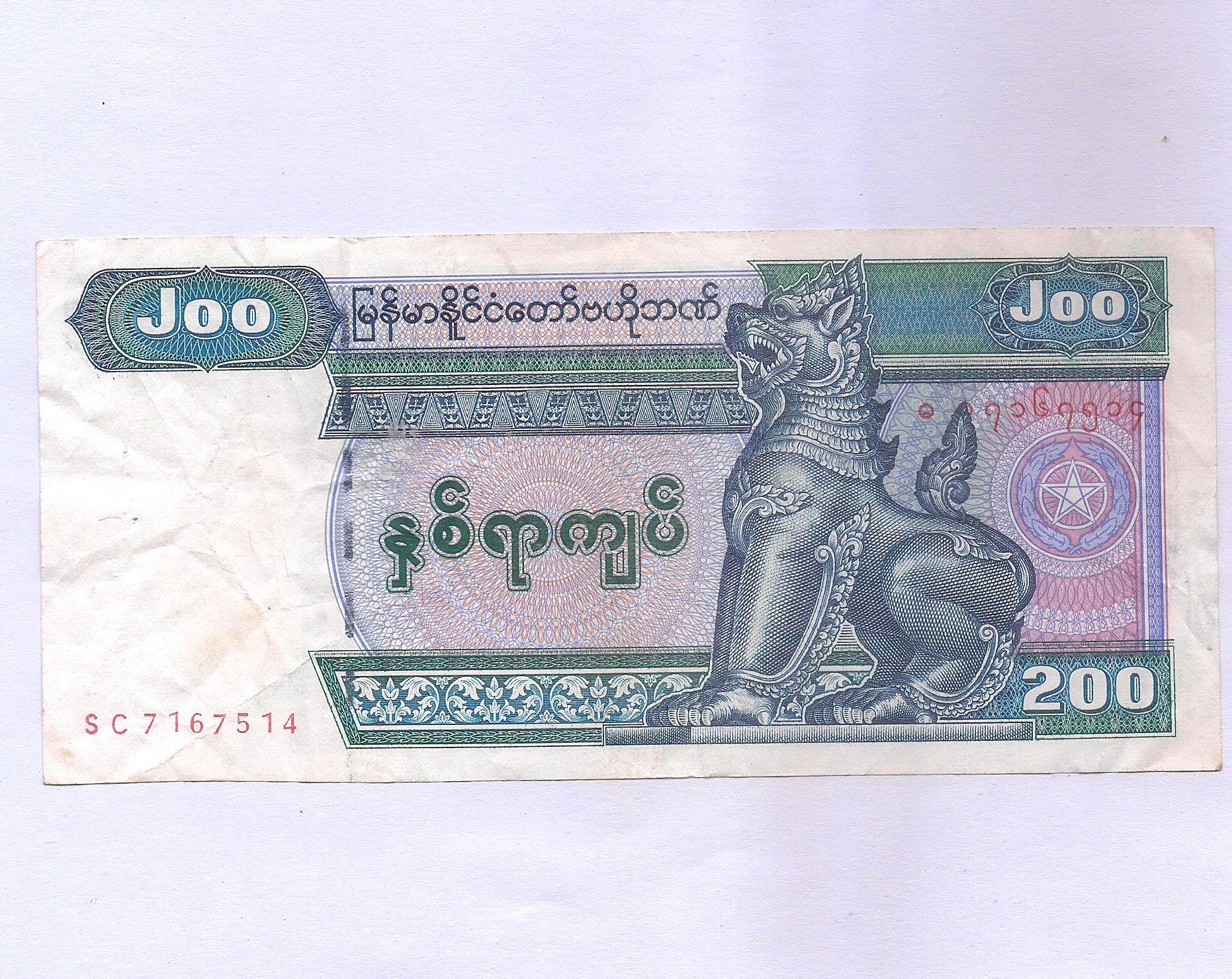 Myanmar ~200 Kyats~1995~ RARE NOTE ~N-45
