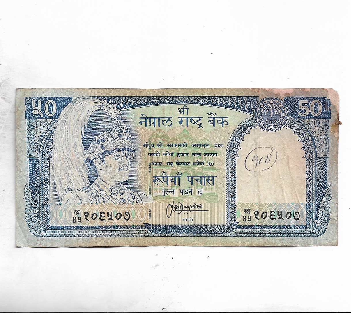NEPAL ~ 50 Rupees – Birendra Bir Bikram, 1982 ~ RARE NOTE ~ F-6/1