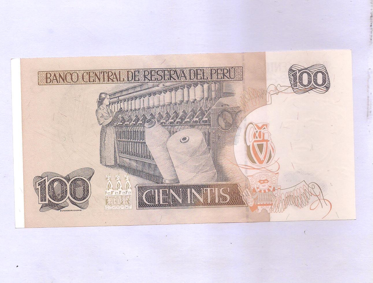 Peru ~ 100 Intis~ 1987~ RARE NOTE ~ F-4/24