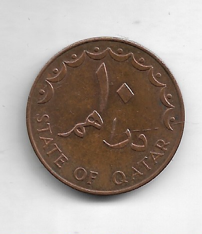 QATAR ~ 10 Dirhams, 1973 ~ RARE COPPER COIN ~ S-22