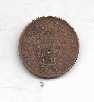 QUEEN VICTORIA ~ 1/12 ANNA ~ 1891 ~ RARE COPPER COIN ~ E-22