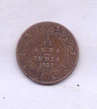QUEEN VICTORIA ~ 1/12 ANNA ~ 1897 ~ RARE COPPER COIN ~ V-19
