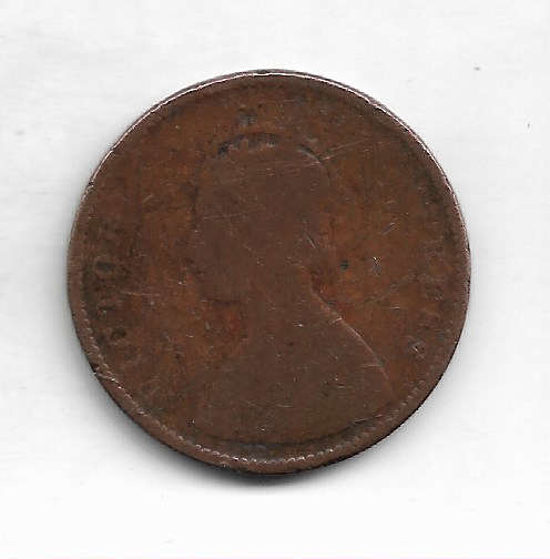 QUEEN VICTORIA ~ HALF ANNA ~ 1877 ~ RARE COPPER COIN ~ G-18