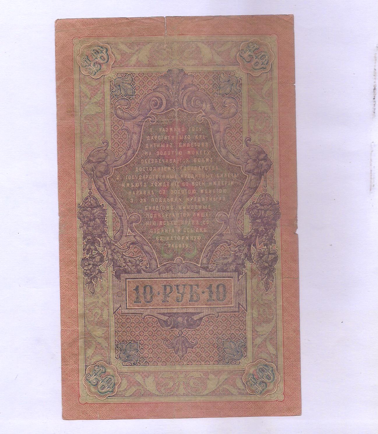 Russian Empire ~10 Roubles~1909~ RARE NOTE ~I-15
