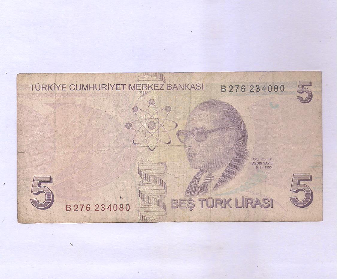 TURKEY ~ 5 LIRE~1970~ RARE NOTE ~F-5/37