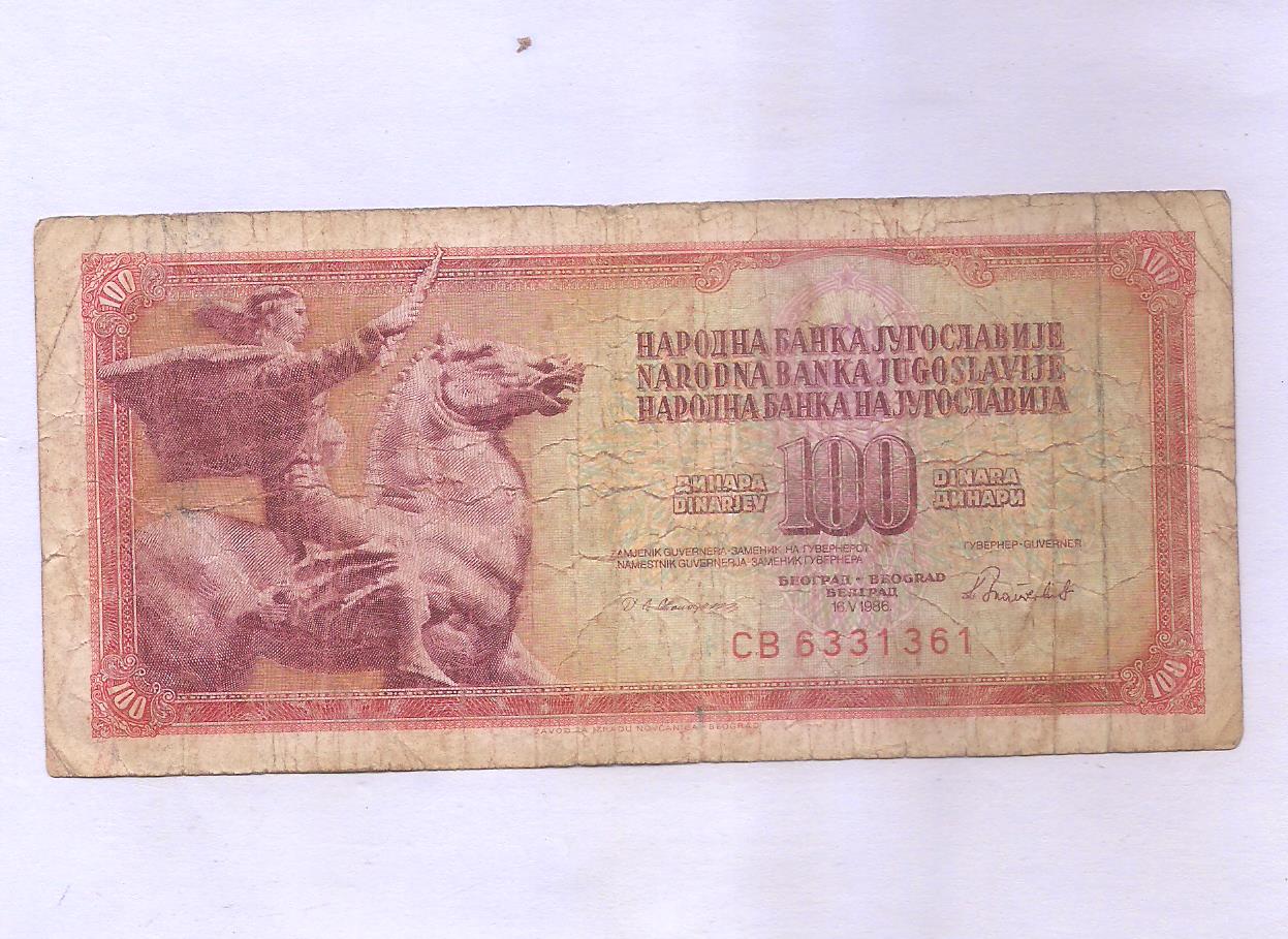 Yugoslavia ~ 100 Dinara~ 1986 ~ RARE NOTE ~ F-4/32